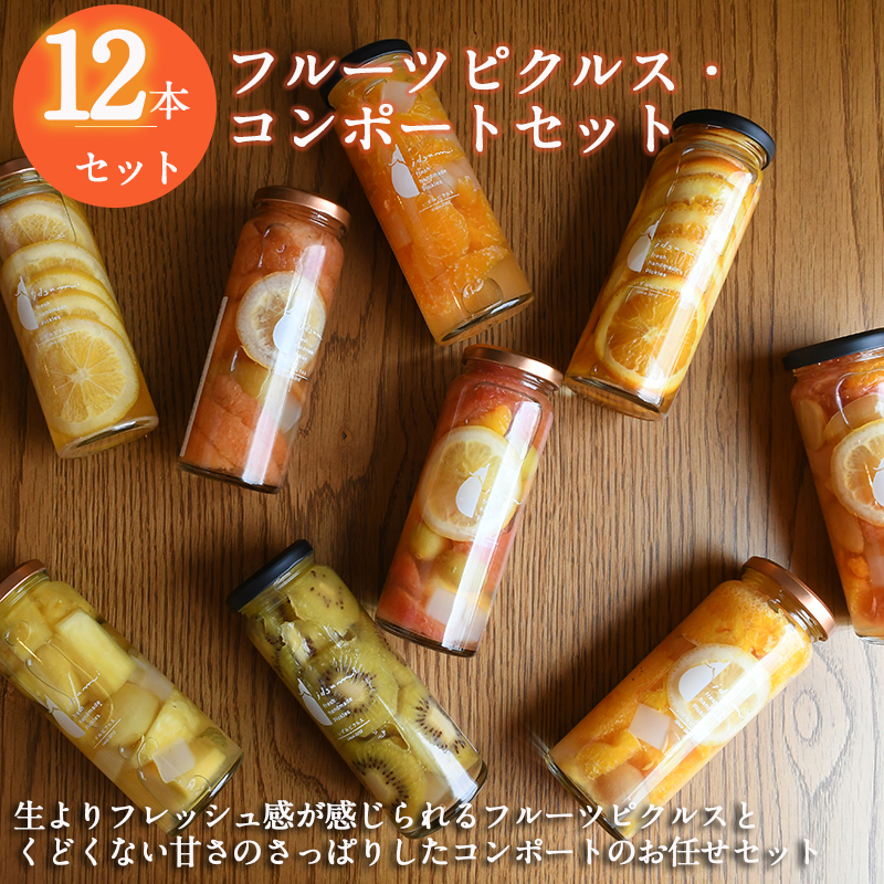 人気のフルーツピクルス、フルーツコンポートのラインナップから計12本をお届けします。