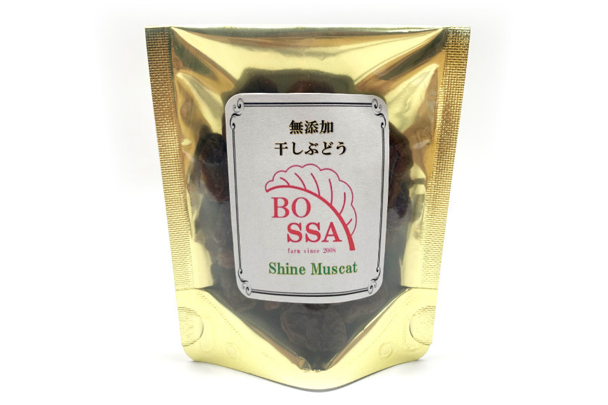 こだわりの「草生栽培」で育てたボッサファームのぶどうを干しぶどうにしました。