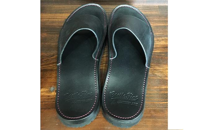 当社ロゴ入りのレザーサンダルです。裁断、床面処理、縫製(手縫い)まで、1つ1つ妥協せず丁寧に手作りしています。使い込むほど、なじんできますので、自分だけの風合いを楽しめます。牛革使用で使うほどに味が出ます。