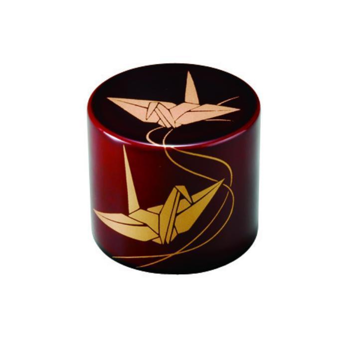 紀州漆器職人が丁寧に仕上げた【文鎮 ペーパーウェイト 丸型 溜 折鶴】です。