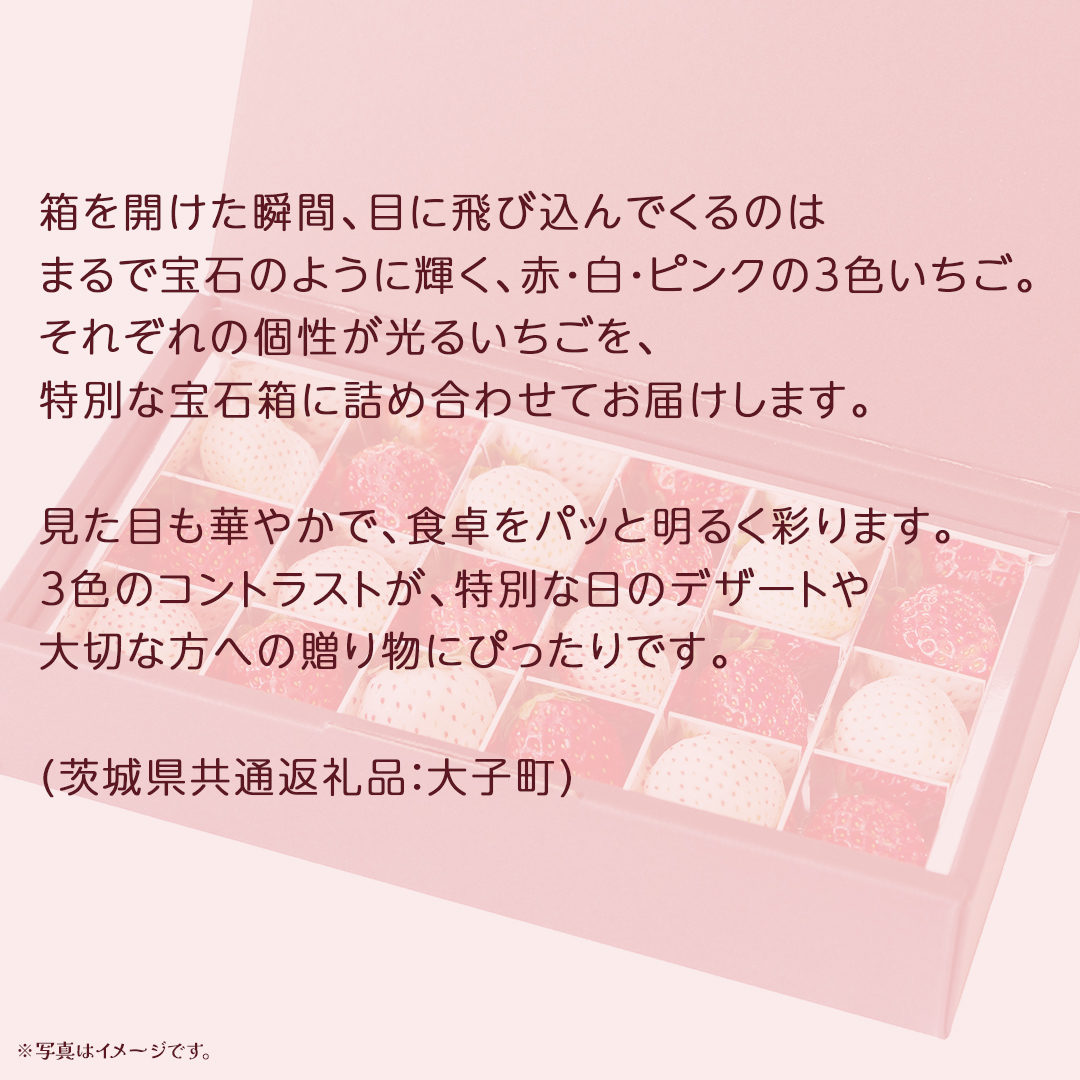 それぞれの個性が光るいちごを、特別な宝石箱に詰め合わせてお届けします。