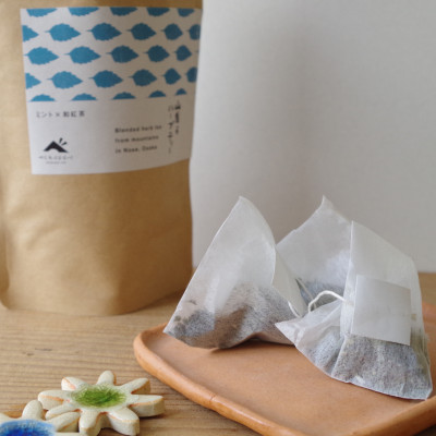 能勢産ミントと奈良県大和高原産の和紅茶をブレンド。清涼感とほんのり甘みのあるミントと和紅茶のやさしい香り。ミルクやお砂糖ともよく合います。