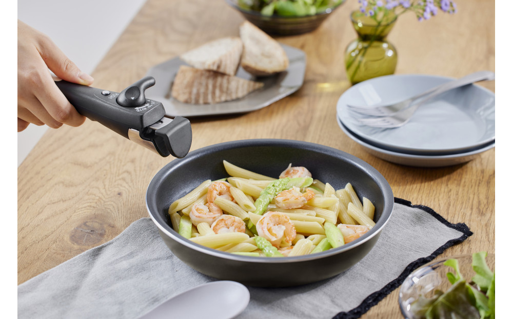 取っ手は着脱式で、食卓への移動や保存にも便利です。