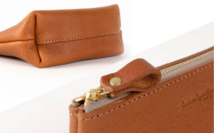 手馴染みのいい柔らかなイタリアンレザーを使ったマチありのシンプルポーチです。