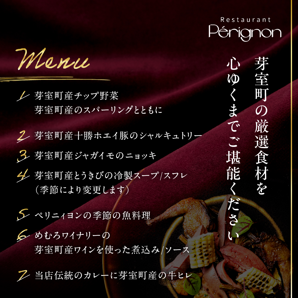 芽室町の特産品を使用したフルコースお食事券をお届けします。