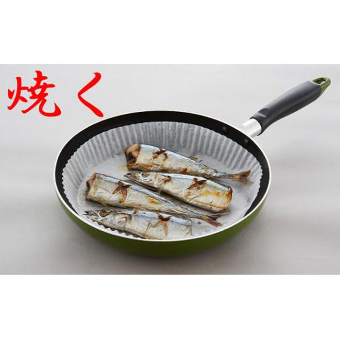※オーブンの天板、フライパンの直径は、20cm以上のものをご使用ください。シートがフライパンからはみ出した状態で使用されますと、燃えることがありますのでご注意ください。