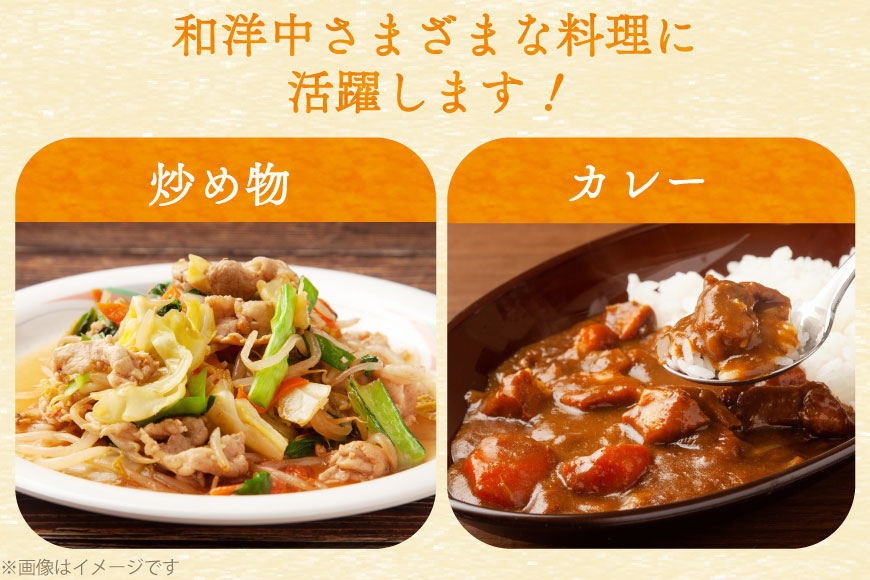 炒め物、カレー、シチュー、串焼きなど、和洋中さまざまな料理に活躍します。