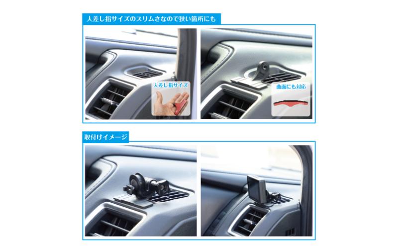 ・両面テープを使用して ダッシュボードに取付け(曲面にも対応)