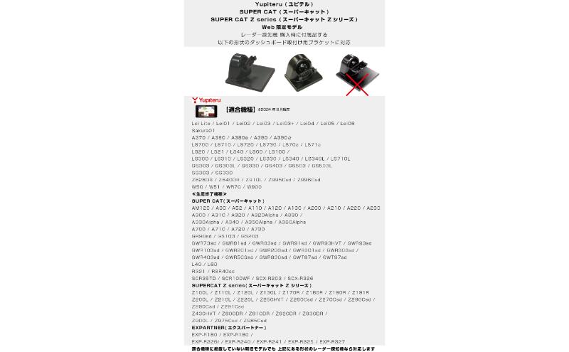 適合機種に掲載していない新旧モデルでも 複数画像にある形状のレーダー探知機なら対応します。