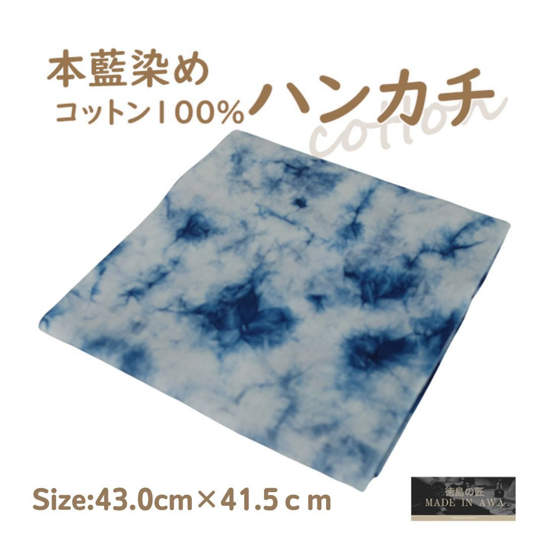 本藍染コットン100% ムラクモ染め ハンカチ