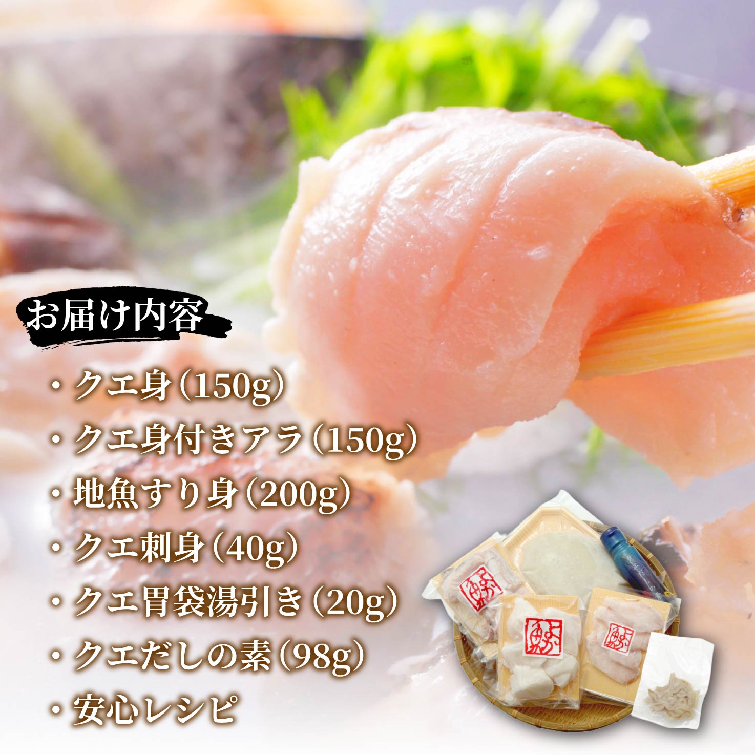 このくえを華やかな香りと深いコクのクエだしの素でお召し上がりいただけます。