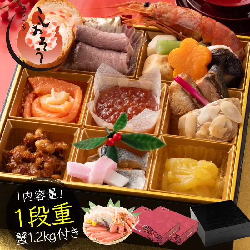 贅沢なおせちと蟹の組み合わせが楽しめます。