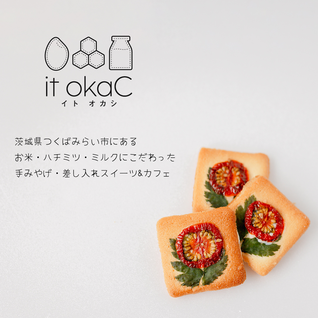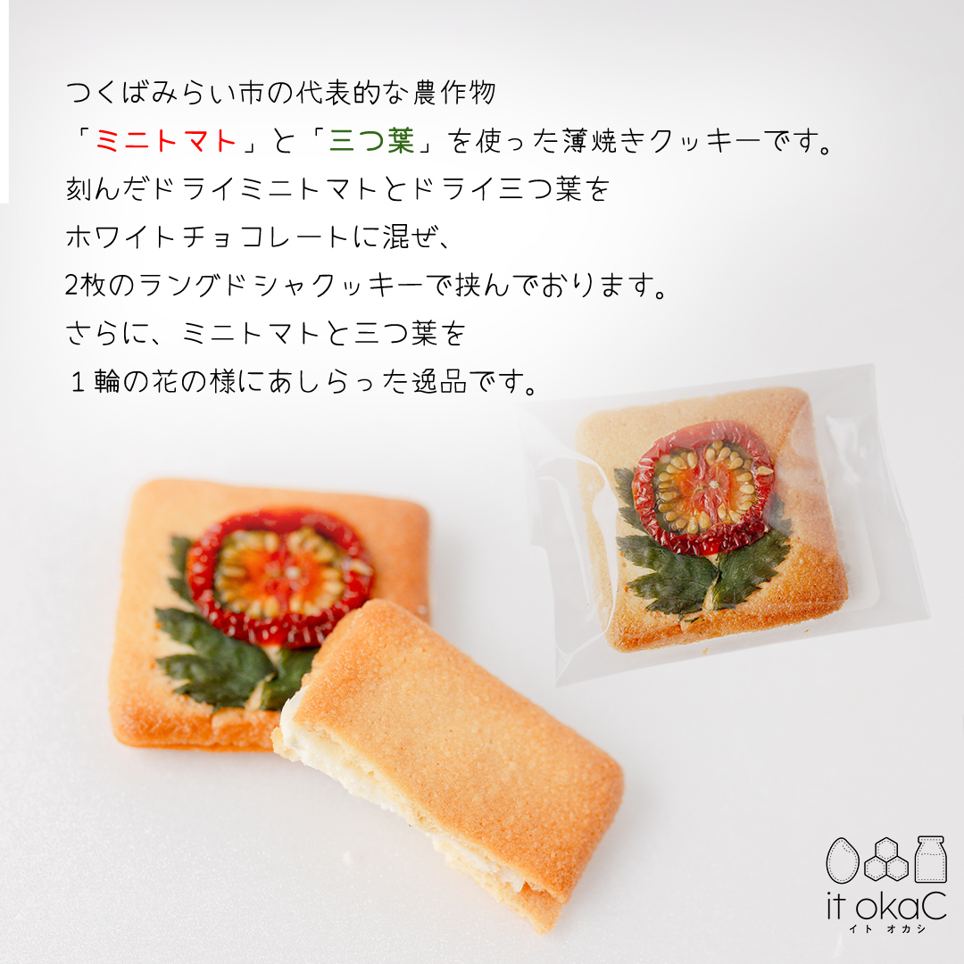 つくばみらい市の代表的な農作物「ミニトマト」と「三つ葉」を使った薄焼きクッキーです。