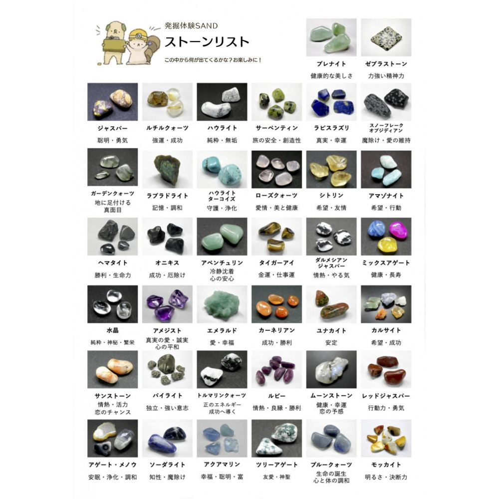 古墳サンド3つとヤスリ1つが入っており、1つの古墳サンドに原石が約5つ入っています。