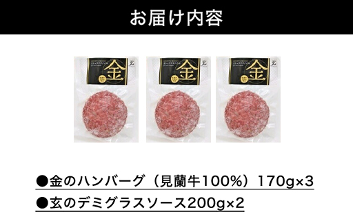 「金のハンバーグ」(冷凍)の3食セットには、レストラン「玄」特製デミグラスソース(1袋:2〜3食分)も付属します。