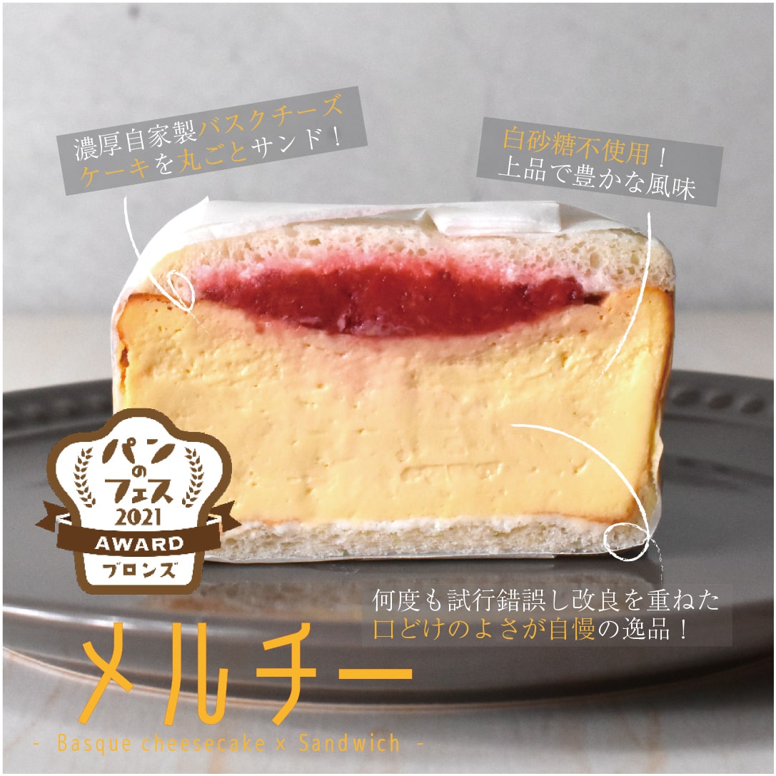 濃厚バスクチーズケーキに爽やかなイチゴジャムを挟んだ見た目も可愛いサンドイッチ「メルチーいちご」2個