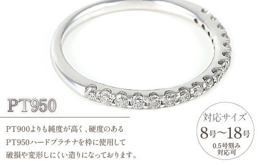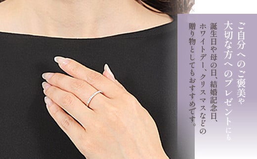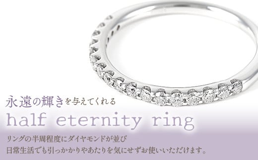 またハーフエタニティリングは、リングの半周程度にダイヤモンドが並んだデザインですので、日常生活でも引っかかりやあたりを気にせずお使いいただけます。