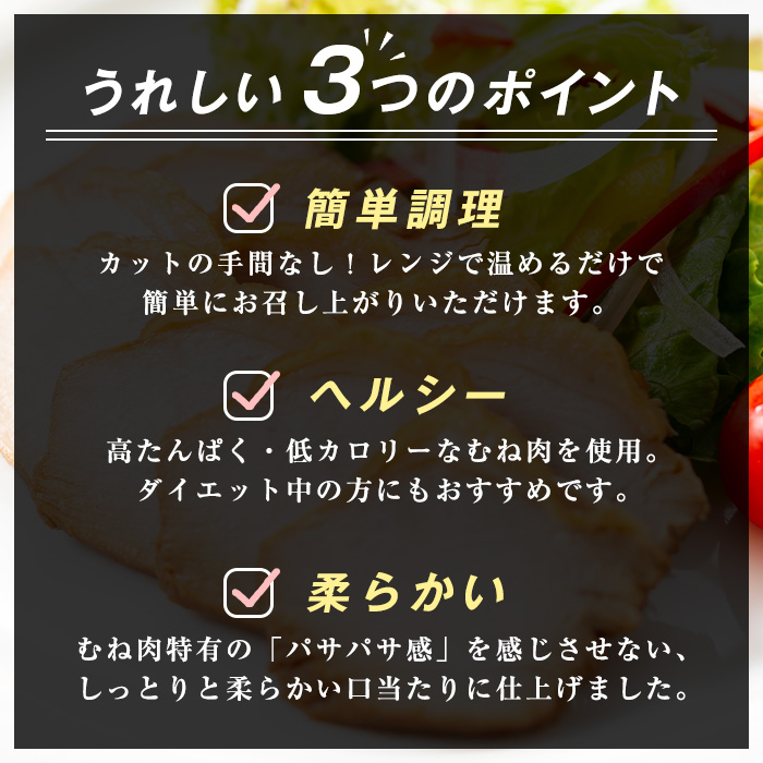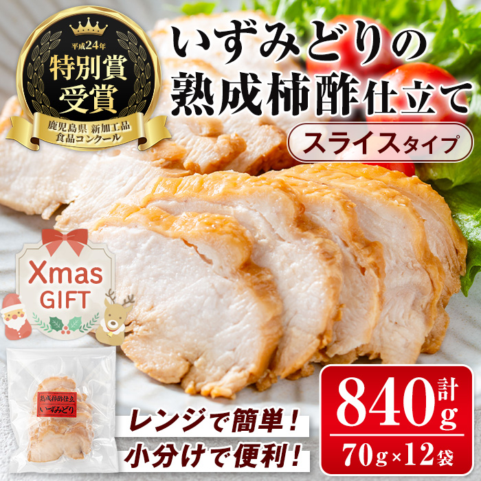鹿児島県で飼育された「いずみどり」むね肉を工場直送で仕入れ、加熱処理後、鹿児島独特の甘い醤油と、柿を自然発酵させて作る「柿酢」を使ったタレに漬け込みました。