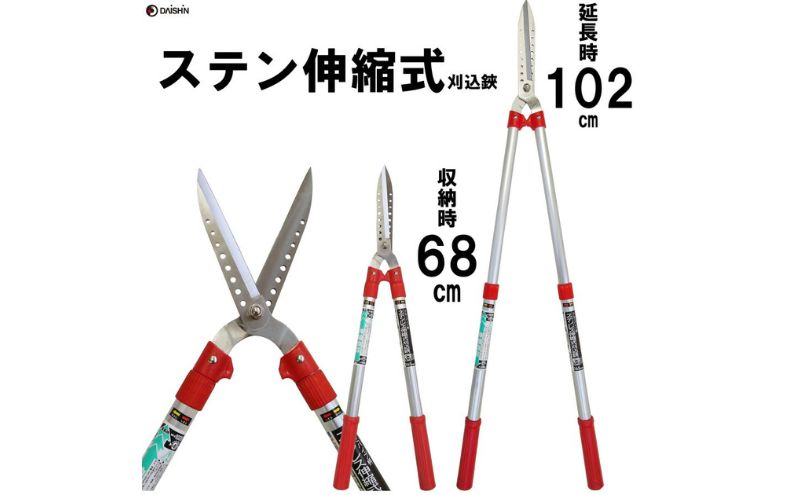 ・庭木・生垣のお手入れに最適:68~102cmまで伸縮可能で、高い枝も手軽にカット。・軽量設計:約940gの軽量ボディで扱いやすく、長時間作業でも疲れにくい。・切断能力:8~10mm以下の生木をスムーズに切断可能(※切断能力は生木の種類・季節により異なります)。・太枝にも対応:太い枝は刃の付け根で2~3回に分けて切断OK。斜めに切るとさらにラクにカットできます。