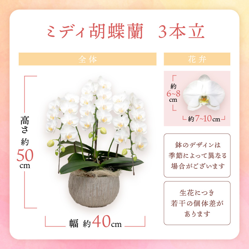 ( 胡蝶蘭 ミディ 鉢付き 選べる 色 ホワイトミディ イエローミディ ライトピンクミディ ディープピンクミディ 胡蝶蘭専門店 )