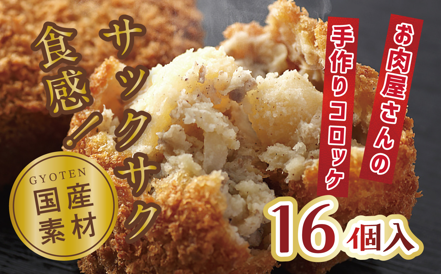 原料仕入れ→牛ミンチ玉ねぎ調合・味付け→炒め蒸したジャガイモと調合→手作業にて成型しパン粉を付ける→冷凍→梱包発送 までを三豊市でおこなっています