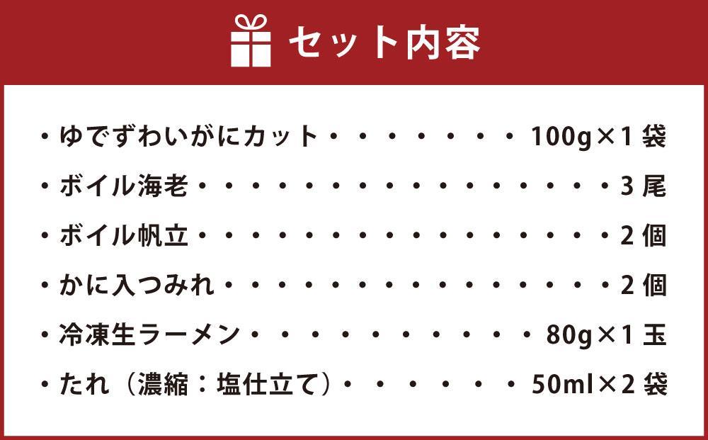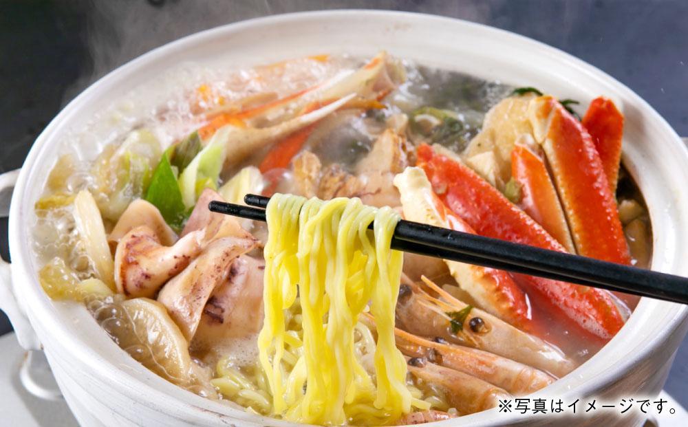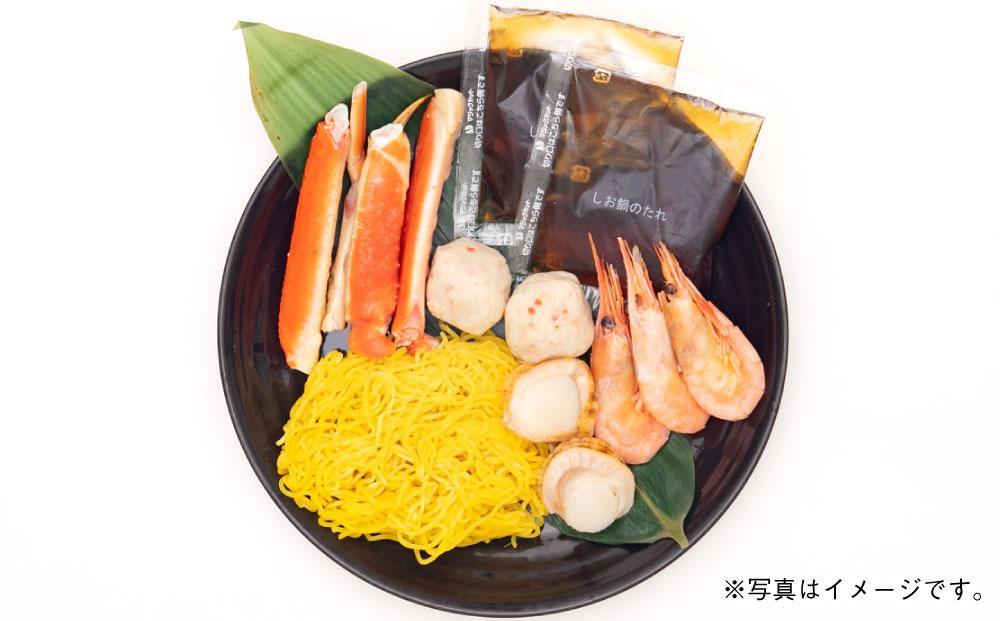 「ずわいがに」をはじめ、「海老」や「帆立」などの魚介を詰め合わせ、各素材の旨味が活きる塩仕立ての鍋に仕上げました。〆は残りたれに「ラーメン」を入れてお楽しみください。ご自宅の野菜も一緒に煮込んでからお召し上がりください。