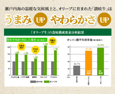 そのオリーブのオイル搾油後の果実を飼料化し、厳格に定められた期間・量で育てられた香川県産和牛、それが「オリーブ牛」です。