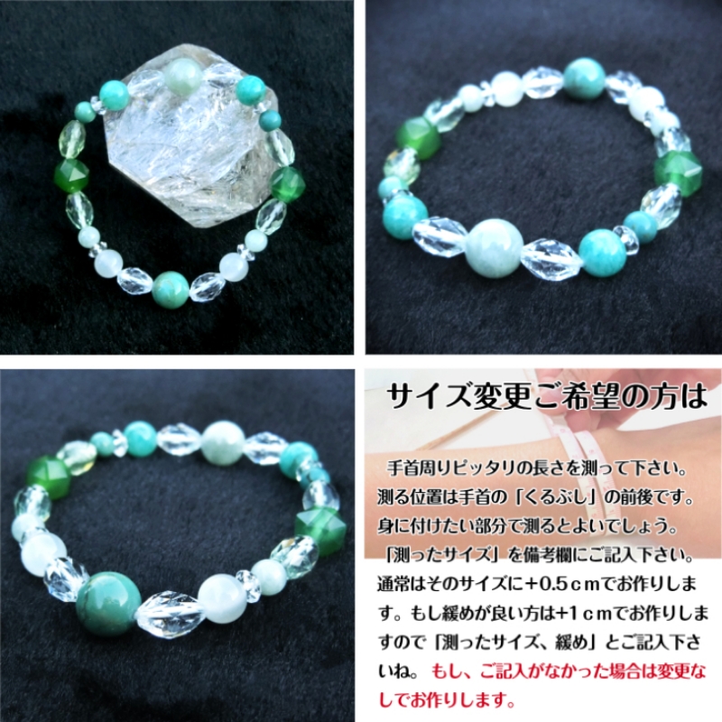 ■原材料:(材質)翡翠、水晶、アマゾナイト、ターコイズ、グリーンフローライト、グリーンオニキス、ムーンストーン、オペロンゴム