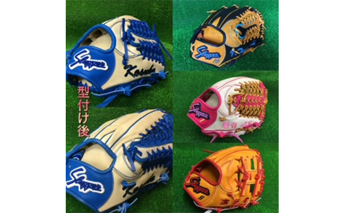 湯もみ型付けと言われるグラブの型付けは、グラブ型付け名人「江頭重利」氏の愛弟子堀内氏に教わった技術で、今までのグラブ作りの固定概念を覆した型付けを提供いたします。