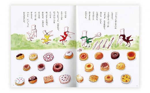4わの子どもたちの意見をきいて、おもしろくてすてきな形のパンをどっさり焼くと、お店が大繁盛!1973年刊行以来人気の、ロングセラー絵本です。