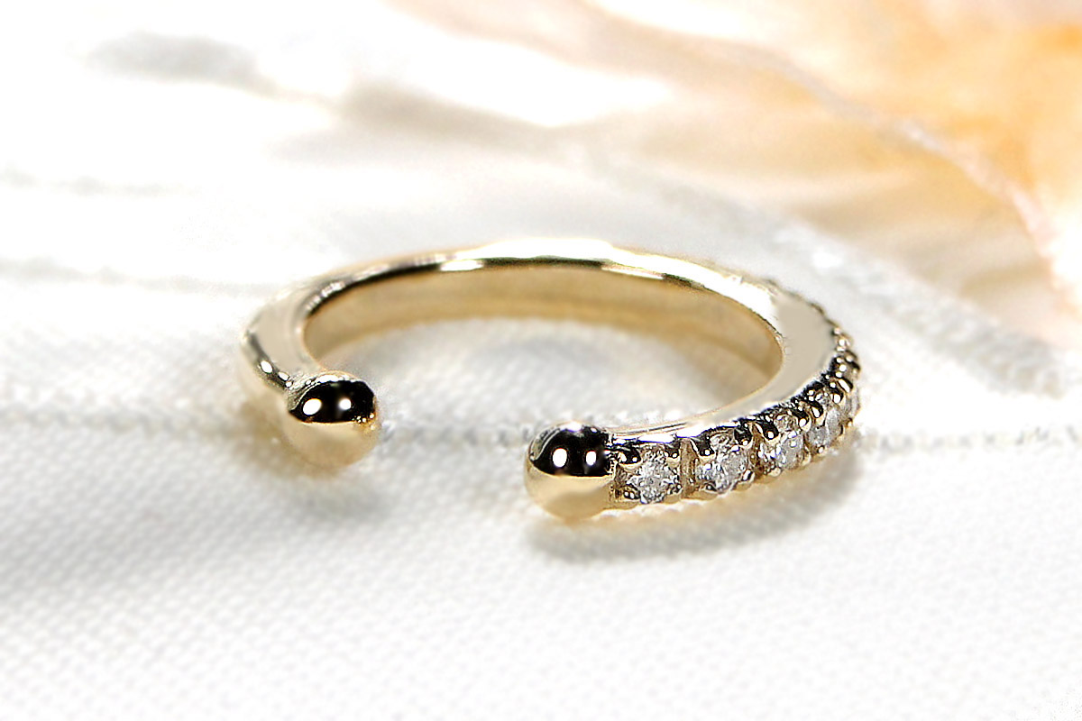 天然ダイヤモンド10石をセットした、イエローゴールドのイヤーカフ!
