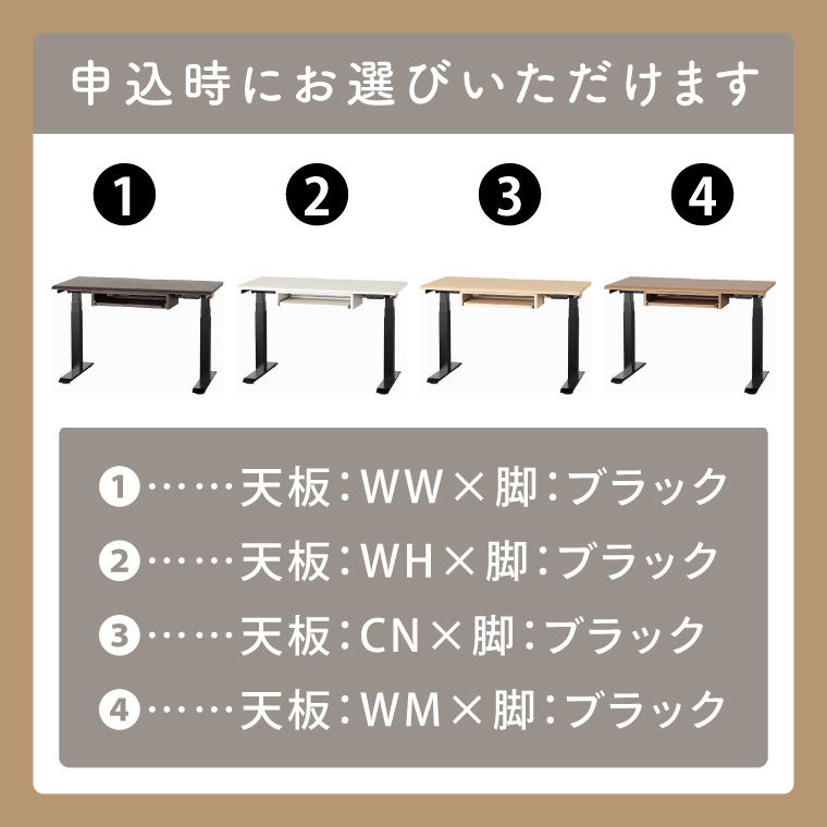 天板4色(WH/CN/WM/WW)×脚2色(ブラック/ホワイト)