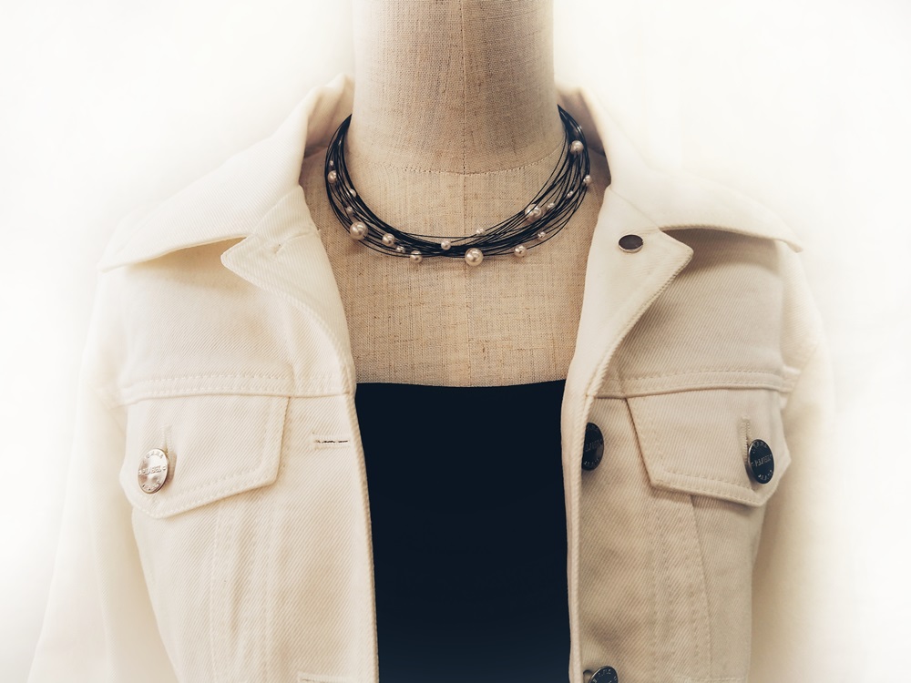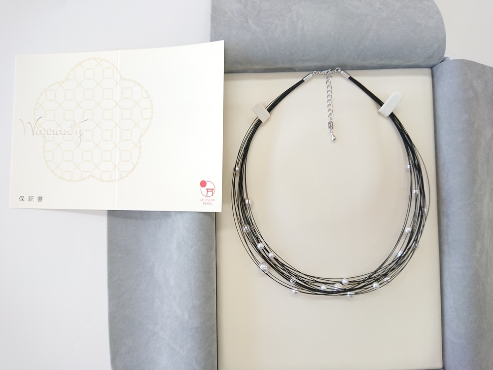 (ブラックカラーコーティング)に大小のアコヤ真珠を散りばめました。