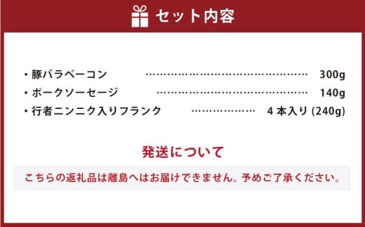 ・行者ニンニクフランク:豚肉、行者ニンニク、食塩、砂糖、発色剤(亜硝酸Na)、調味料(アミノ酸等)、香辛料、酸化防止剤(ビタミンC)、植物たん白