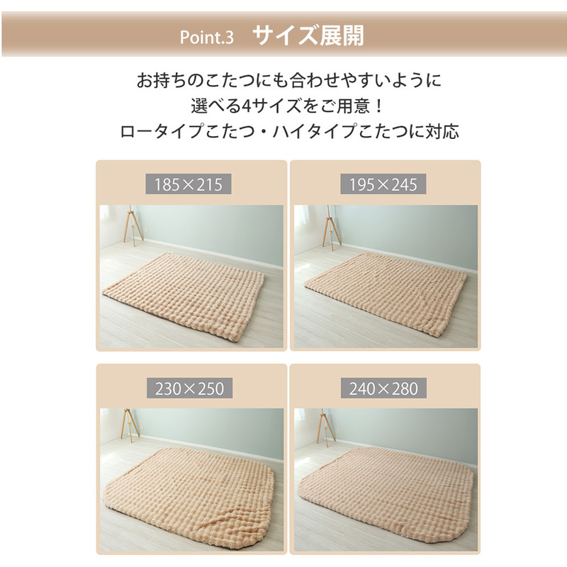 1枚で2種類の異なった触り心地を味わえるリバーシブルタイプのこたつ掛布団です。