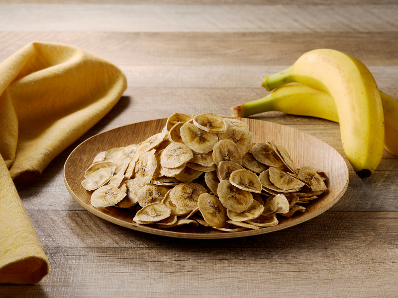 油で揚げていないので、一般的なバナナチップスよりヘルシーで低カロリーです。