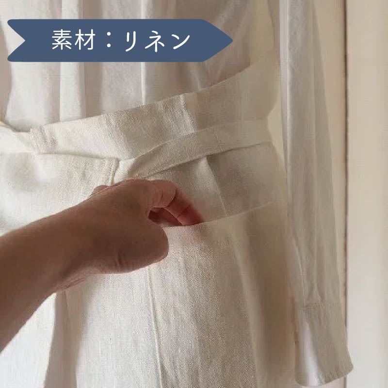 ホワイトリネンのエプロンは清潔感があり、着けることで気持ちが引き締まります。