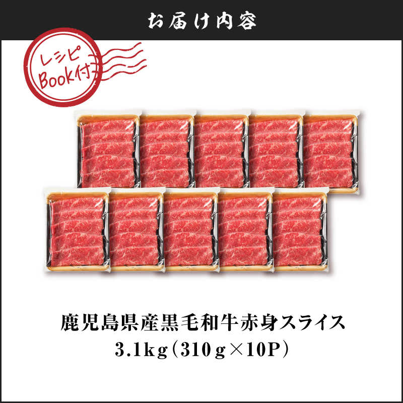 鹿児島県産黒毛和牛赤身スライス 3.1kg(310g×10P)