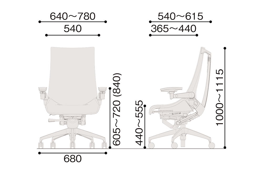 【サイズ】W640(脚:680mm)×D540~615×H1000~1115mm(SH:440~555)