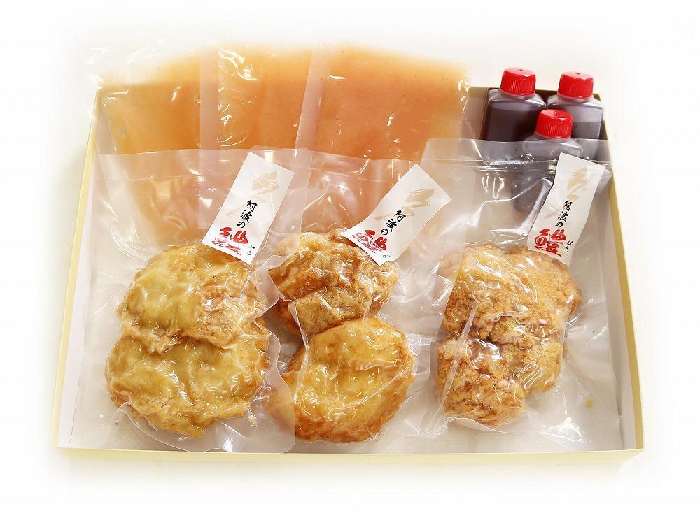 鱧フライ、梅おろしあん、ご飯のタレが3食ずつ入っておりますので、ご飯をご用意頂くだけで手軽にお召し上がりいただけます。
