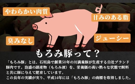 もろみ豚の特徴は豚特有の臭みが無く脂身があまい為、胃もたれせずにさらりとお召し上がりいただけます。