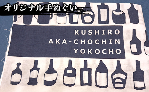 釧路赤ちょうちん横丁内各店舗で利用できる飲食券6枚(3,000円分)とオリジナルマグネット、オリジナルトートバッグ、オリジナル手ぬぐい