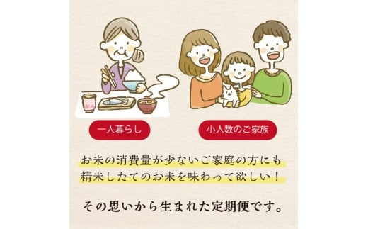 一人暮らしの方や、少人数のご家族など、お米の消費量が少ないご家庭の方にも精米したてのお米を味わって欲しい!その思いから生まれた定期便です。精米したての無洗米つや姫をお楽しみください。