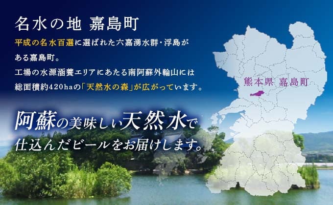 平成の名水100選に選ばれた六嘉湧水群・浮島のある地に開設された「天然水のビール工場・サントリー九州熊本工場」で醸造された人気商品2種を8ヵ月連続で毎月お届けします。