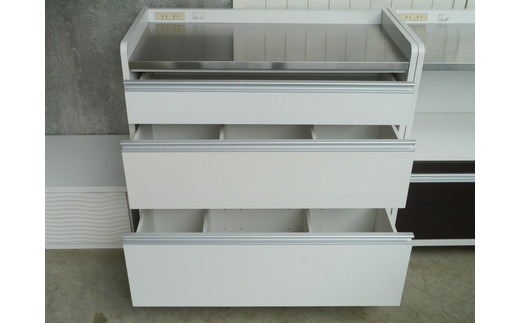 中下段は、フルオープンスライドレールで使いやすく、キャスター付きで移動も容易にできます。固定もできるストッパー付きのキャスターです。