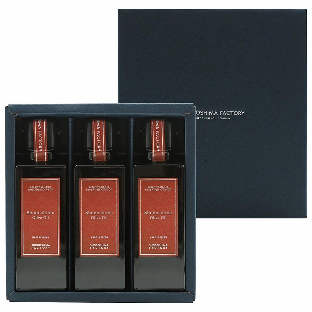 オメガ9(オレイン酸)が豊富な小豆島産100%エキストラバージンオリーブオイルの3本入ギフトセット。