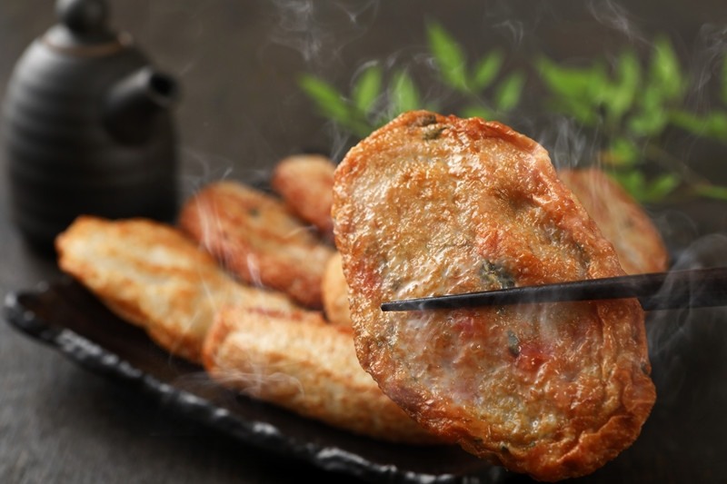 相模湾の豊かな漁場で獲れたオキギスなどが原料で、晒し技術や包丁技術、豊富な資源によって味を高め、参勤交代や湯治客によってその名が全国に広まったと言われています。新鮮で上質なすり身や小田原漁港で水揚げされた魚をミネラル豊富な箱根、丹沢水系の地下水でゆで上げ、多彩な具材もすり身に合うものを厳選しております。