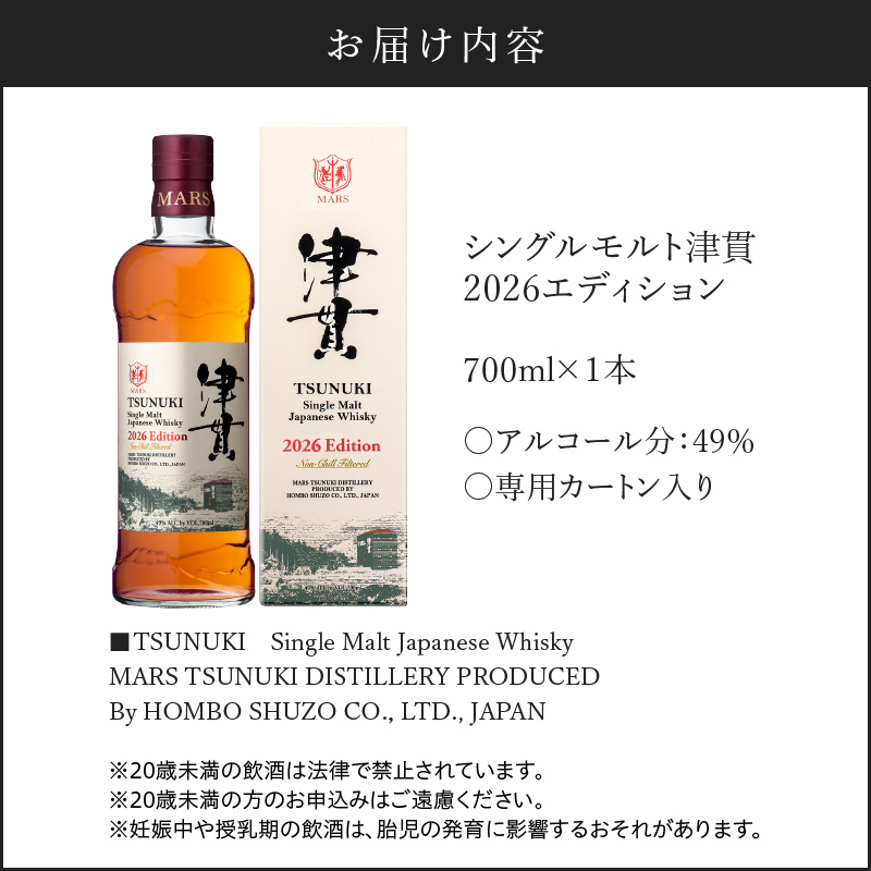 シングルモルト 2026エディション 津貫 津貫蒸溜所 ウイスキー ウィスキー スモーク ストレート オンザロック 水割り ハイボール 焼酎維新館 ふるさと納税 鹿児島 おすすめ ランキング プレゼント ギフト K204-005_2026