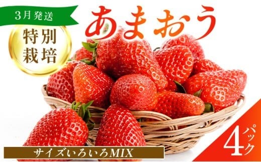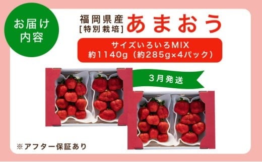 福岡県産 特別栽培 あまおう サイズいろいろMIX 約1140g(約285g×4パック)