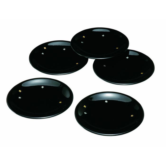 紀州漆器職人が丁寧に仕上げた【5.0寸 銘々皿 黒 千鳥 (5枚組)】です。